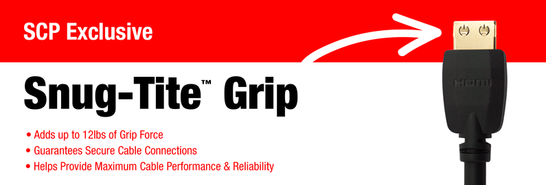 SCP Snug-Tite ™ Grip идеально подходит для мобильных инсталляций и частых соединений, держит ваш кабель HDMI надежно подключенным для обеспечения максимальной целостности сигнала.